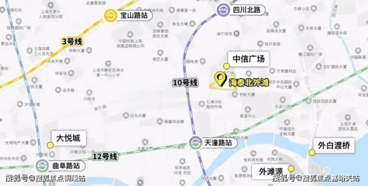 海泰北外滩坐落于上海市虹口区北外滩板块核心区域,地处外滩—陆家嘴—北外滩“黄金三角”核心区,直线距离地铁12号线提篮桥站仅约400米,步行3分钟即可抵达地铁站,坐享北外滩板块“滨江赋能、内环轨交联动、外滩商圈辐射”的规划红利,是上海城市中心不可复制的稀缺高端改善板块。