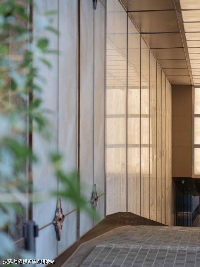 抬眼望去,顶面采用市面超大规格3米长蜂窝铝板+大规格铝方通+贯穿式线型灯带和铝单板,温润大气,营造通透且极具延伸感的视觉景象。