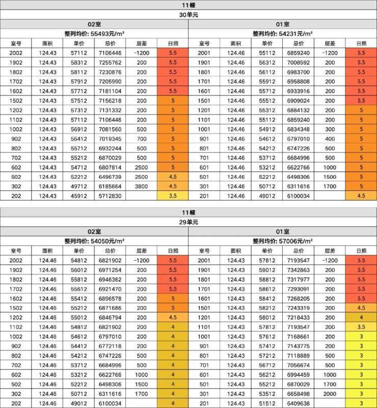 下图我将11号楼的楼层跳价和冬至采光时长做了结合,3点注意: