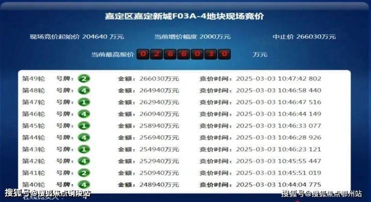 3月3日,上海2025第二批次土拍,经过49轮竞价,招商蛇口以266030万元的总价摘得嘉定新城远香湖F03A-4地块,溢价率30%,成交楼板价约31850元/㎡。