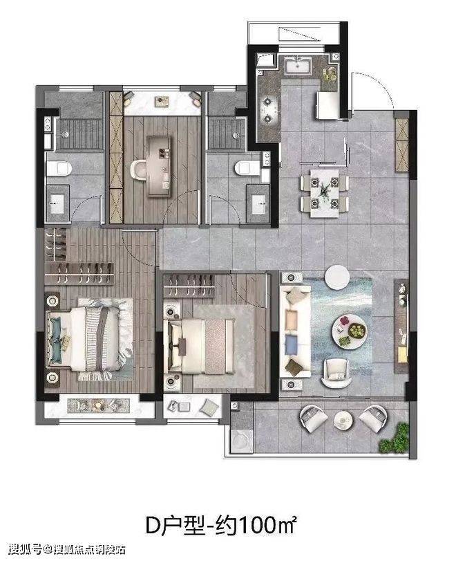 建筑面积约100㎡样板间实拍示意图