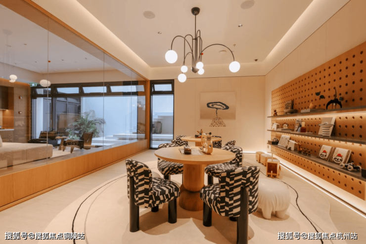 再看目前呈现的C区组团会所,木色风格和考究光线的运用让空间感非常强,搭配外部下沉式小广场的绿植阳光等,形成了通透考究的第二会客厅。而从内部布局来看,极具艺术感的装饰提升了整体的档次,友邻交流、亲子阅读、对话品茗、健身运动等需求随时满足,生活氛围浓郁。