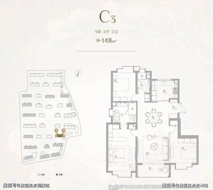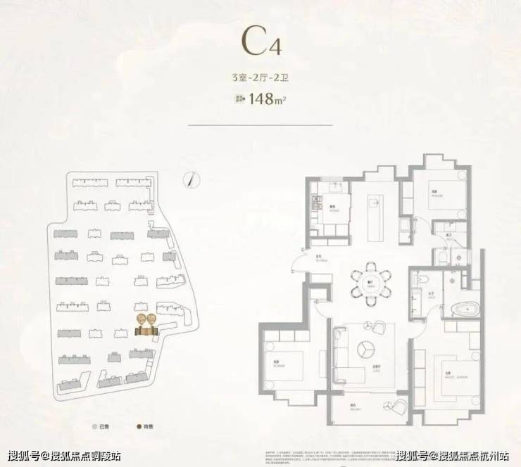 项目一期房型均呈现大开间、短进深的特点,主力房型为131㎡3房,占到一期总量的70%,其余房型为100㎡2房,155㎡3房,175㎡4房。项目一期于2022年11月入市,推出621套房源(C区),总认购1400+组,认购率225%,入围分55.28,开盘售罄!