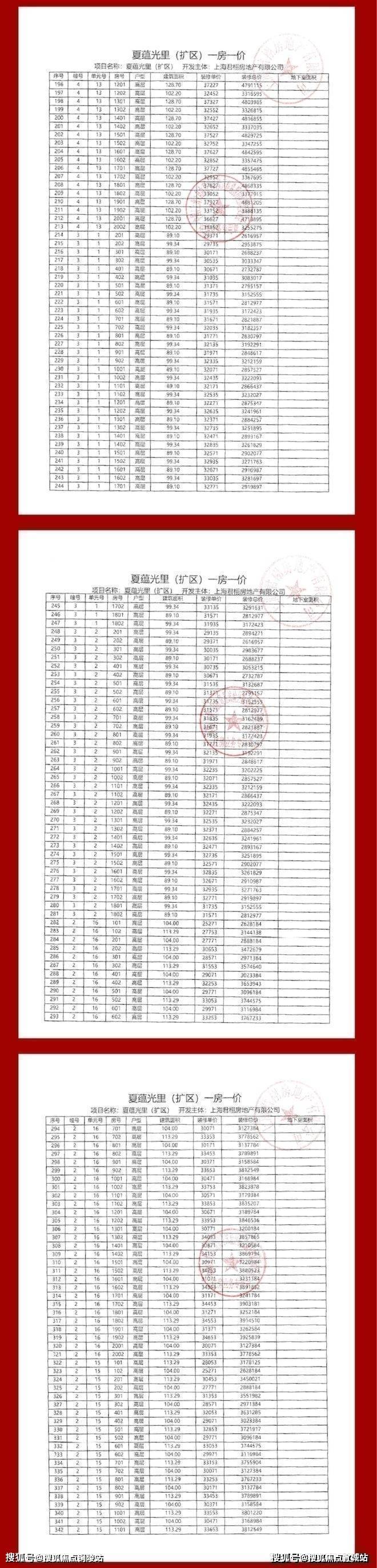 项目一房一价表