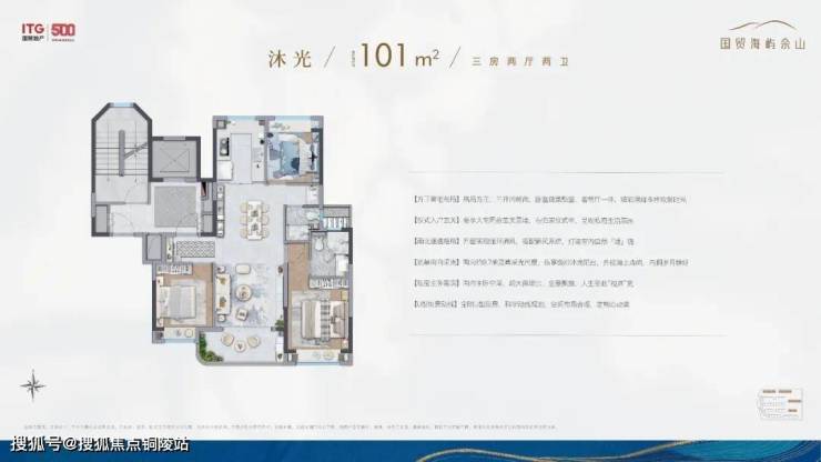 除了叠墅外,全社区仅4幢建面约101㎡沐光全景小高层,通过前瞻排布,几乎做到了户户景观无遮挡。