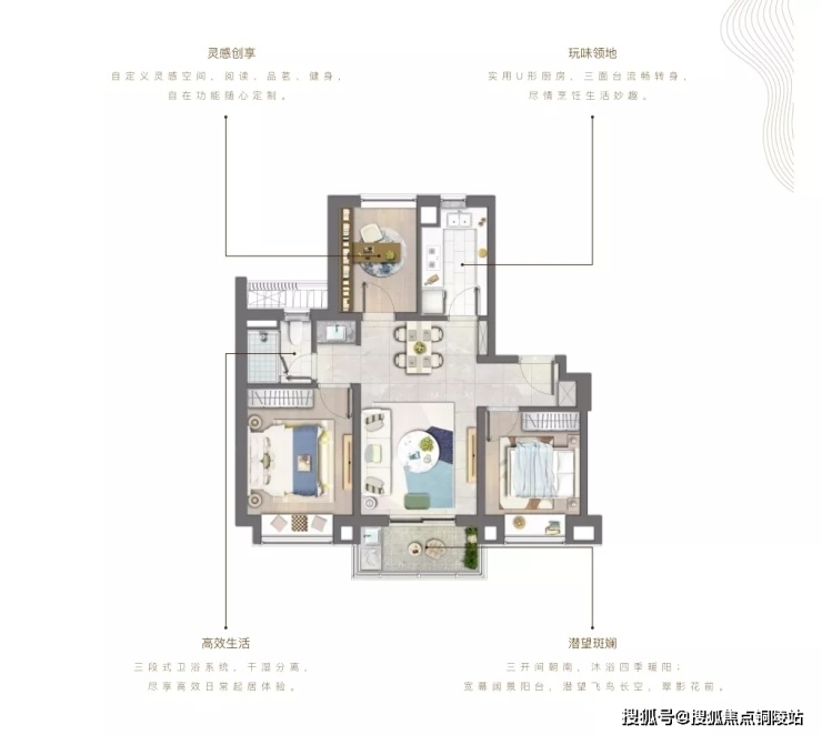 该户型“空间感、舒适度”都没有让人失望,非常适合小太阳家庭或者二胎家庭。