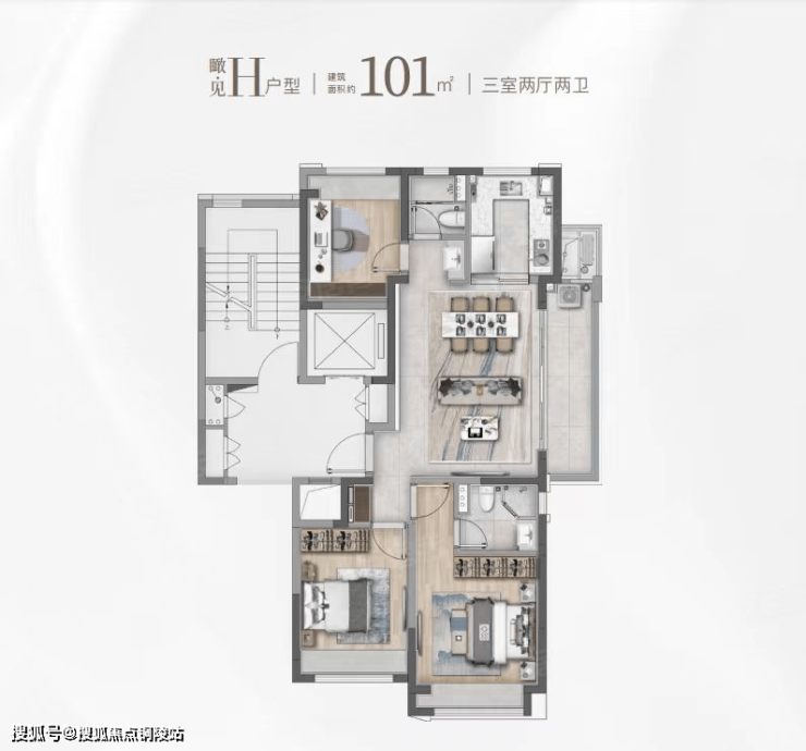 建面约101㎡的F和G户型都是市面上备受认可的飞机经典款户型。