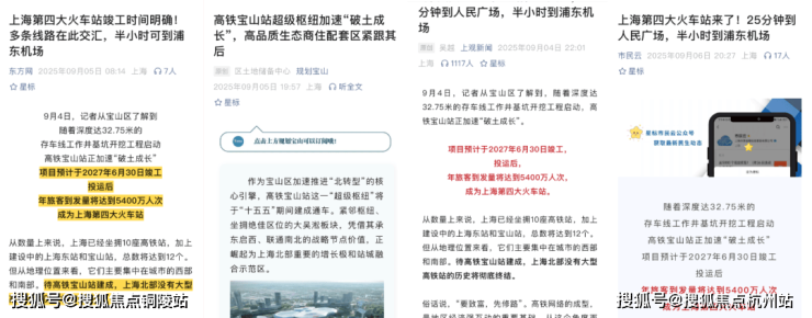 “2027年与高铁宝山站同步建成后,该项目(金茂棠前)将无缝对接高铁与轨交TOD的‘流量入口’,26分钟直达南通,30分钟连接浦东机场的‘半小时经济圈,实现规划红利的持续盈收’”!(来源上海宝山)
