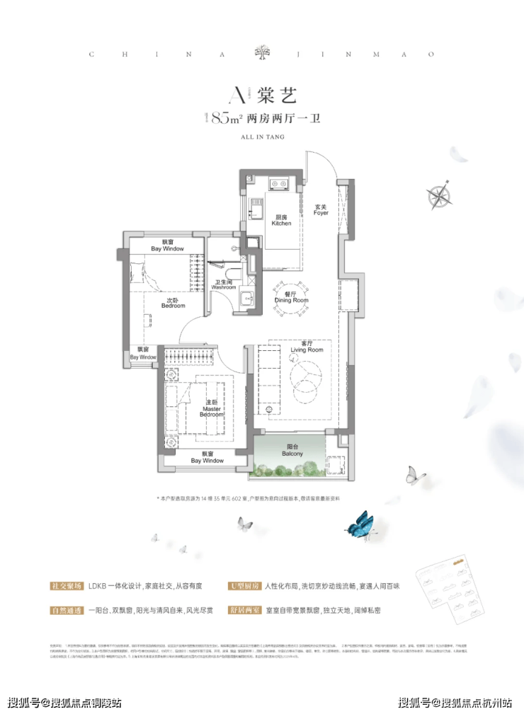 首先,小户型也有大空间,超高附加值增加实得率。即便是最小的建面约85㎡户型,也“挤”出了大空间,堪称小户型的典范。