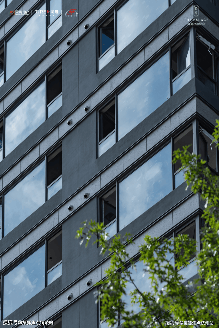 建筑方面,虹桥嘉悦府汲取高级灰经典美学灵感,以珍珠蓝石材、多彩仿石漆、深灰色铝板搭配宽幕玻璃,整体呈现玻璃流幕现代立面,经典永不过时。
