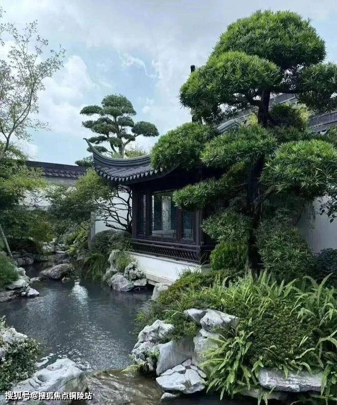 中式园林是最纯粹最理想的精神皈依之所。进入园林庭院,古朴有致,瘦漏透皱的太湖石下一方清泉涵韵其间,低头有池水如镜,抬头有瀑布如练,“水积必然龙有穴”,富贵因子已然埋藏于此。