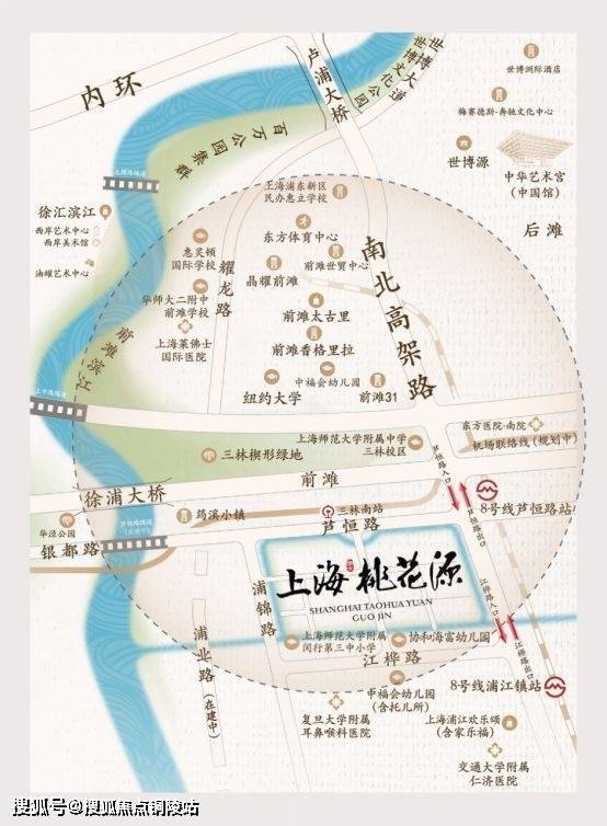 上海桃花源售楼处电话:400-9699-334✨【官方认证】✅✅✅的择址,与传统市中心人民广场在南北中轴线上,由济阳路快速路、中环、外环以及各大隧桥快速连通市区,这是项目出则繁华的基础。