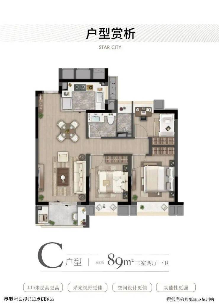 ·建面约88㎡3房:大虹桥范围不到90㎡的户型大部分都只做到2房,而虹桥灿耀星城该面积段实现3房功能性,让自住客户一步到位,也让该产品进入二手市场后具备降维打击的优势!