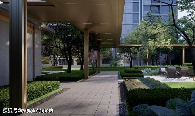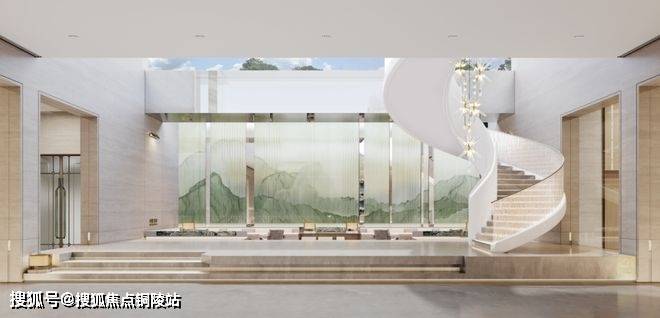 步入庭院,精致会客厅搭配匆匆绿意和层叠水院,颇具层次感的美景让归家的业主瞬间放松,卸下一天的疲惫,也深度诠释了项目归家即是度假开始的设计理念!