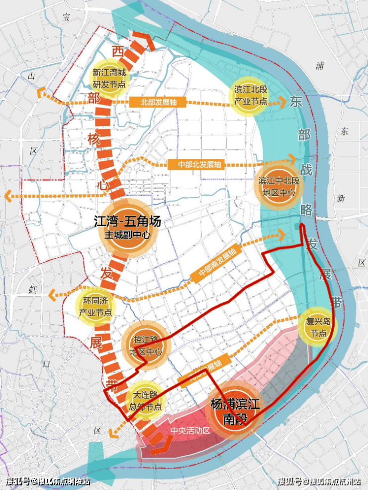杨浦区2035规划为这片区域描绘了一幅宏伟的蓝图。为了加速实现“东西携手并进,南北互动发展”的战略目标,通过优化空间布局,促进功能区域的联动与融合,规划构建了一个以“一核引领,三心聚力,两带贯穿,四轴联动”为特色的总体空间架构。而周家嘴板块正位于南部发展轴的核心位置,与东部战略发展带紧密相连。