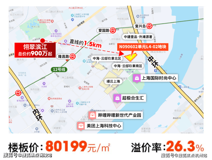 就在上周五,上海四批次土拍开拍,杨浦又出让了一块地王!杨浦区N090602单元L4-02地块,5家经过了72轮的报价,最终以溢价率约26.30%、楼面价约80199.3元/㎡的成绩被拍下,预计这个地块应该卖约13万+的价格。而翎翠滨江二期均价109341元/㎡,总价仅900万起,在这样的市场下,即将认购的翎翠滨江真的赢麻了。