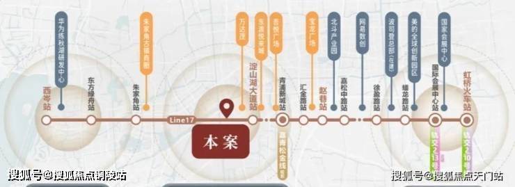 项目直线距离17号线淀山湖大道站约800米,3站华为、4站市西软件园、8站虹桥商务区,直接锁定三大高能级产业价值,串联起周边的产业菁英!