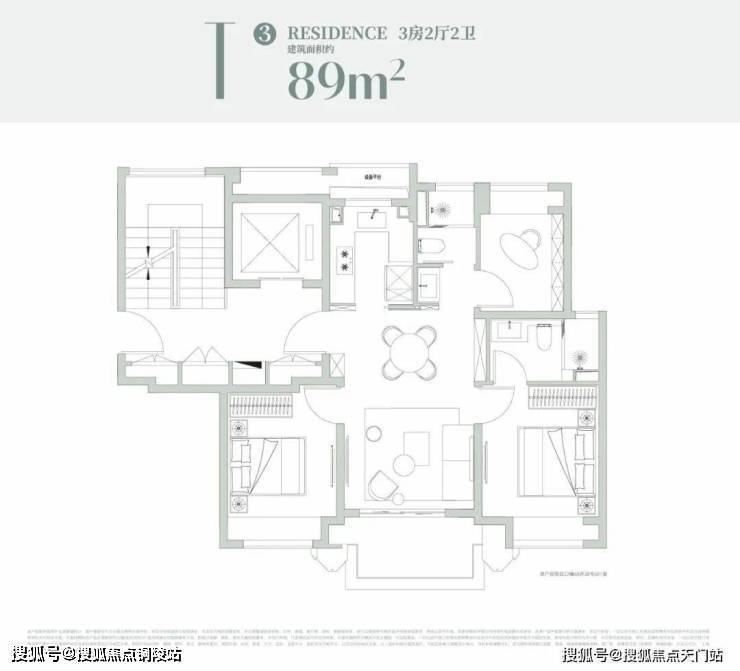 建面约89m²3房2厅2卫