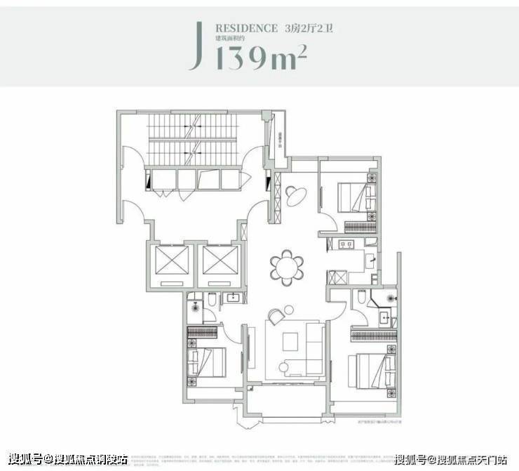 经典的四叶草布局,四开间分布在四角,兼顾私密与互动,是二胎家庭的优选.