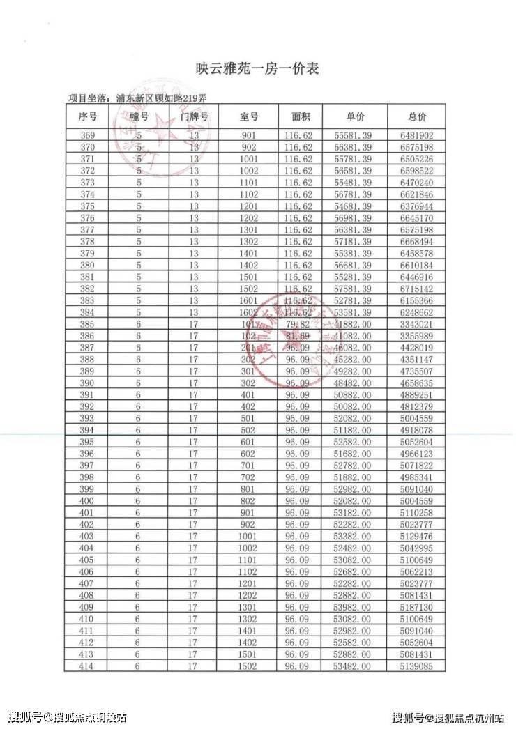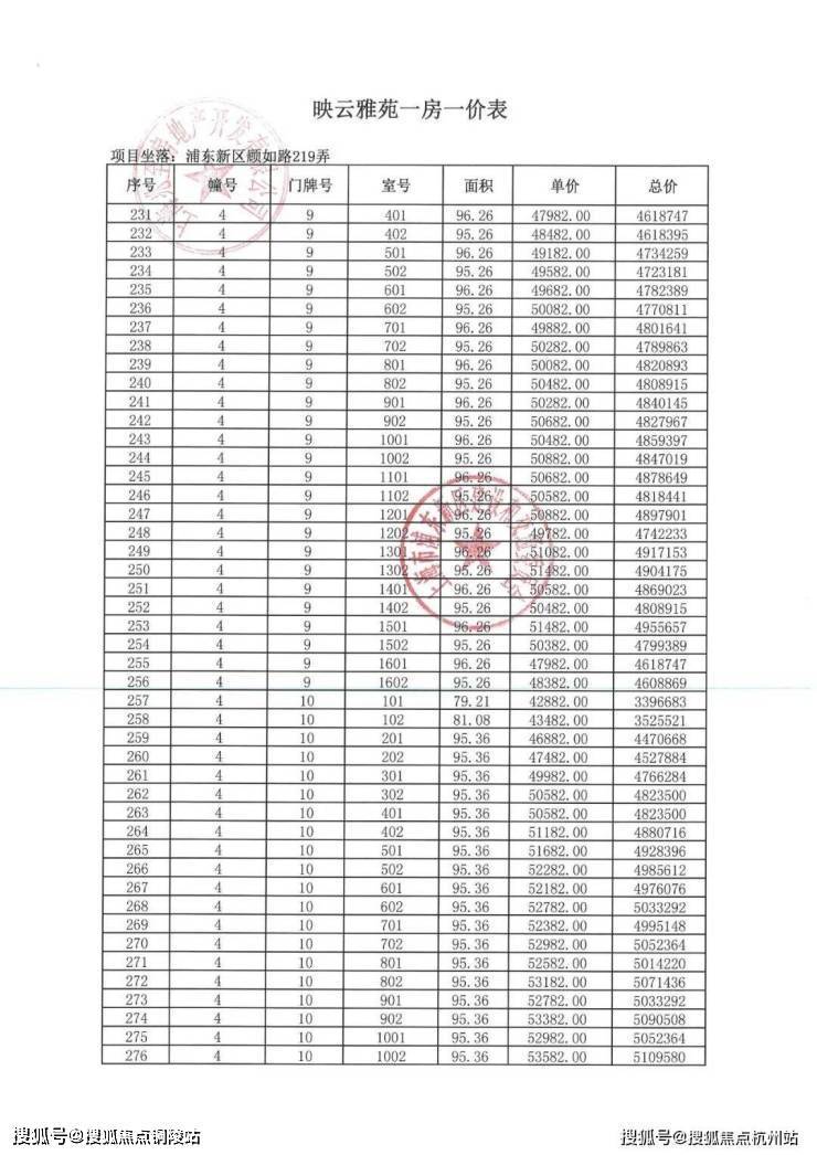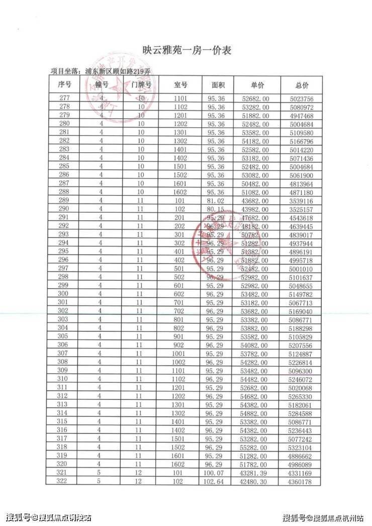 项目一房一价表▼