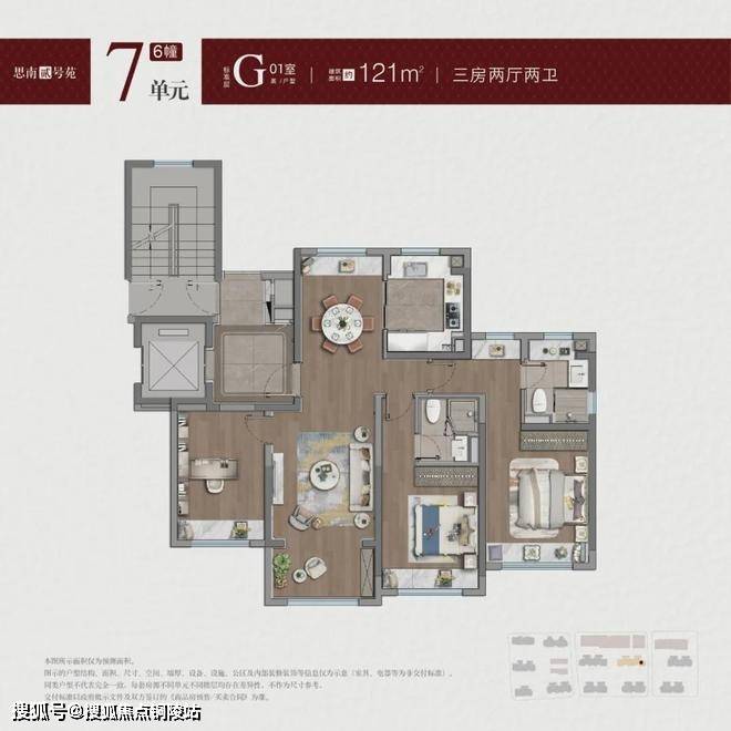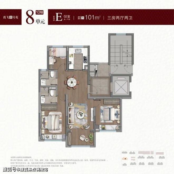 建面约100-101㎡户型,拥类独立电梯厅,无连廊+飞机户型南北通透。