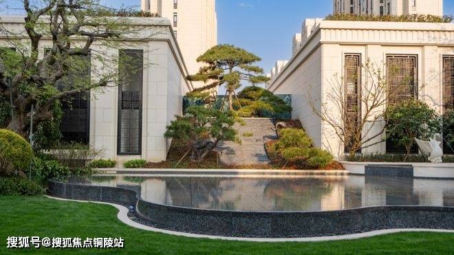 水景、雕塑、草坪、绿植打造生态底色,营造宜居的社区微环境。三棵100多年树龄的朴树各具造型和姿态,松、竹、梅“岁寒三友”,铜鹤,构筑独特意境。风雨连廊取“框景”手法,质感显而易见,所付出的成本更是无需赘述。