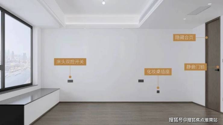 床头双控开关,灵活控制居室照明;化妆桌插座,整理妆容更便捷;静音门锁,出入不会打扰家人;隐藏合页,藏于门缝内,保证空间美观度。