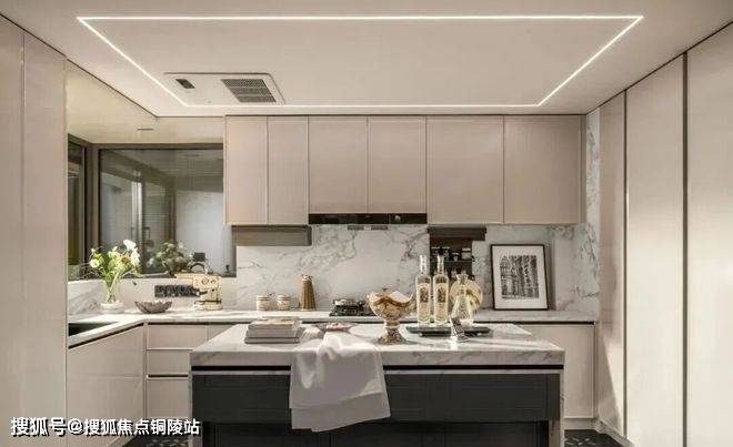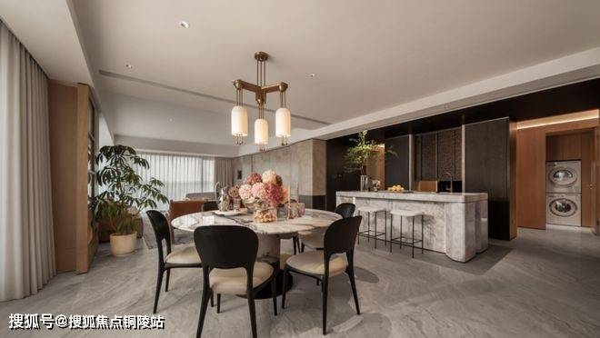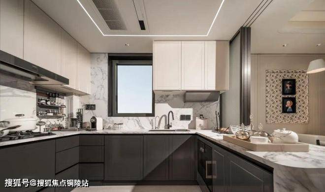 整体动静分区的格局下,U型厨房不只是烹饪场域,更因融入“社交属性”而成为家庭互动的温情角落,烹饪的同时可与客厅的家人交流。