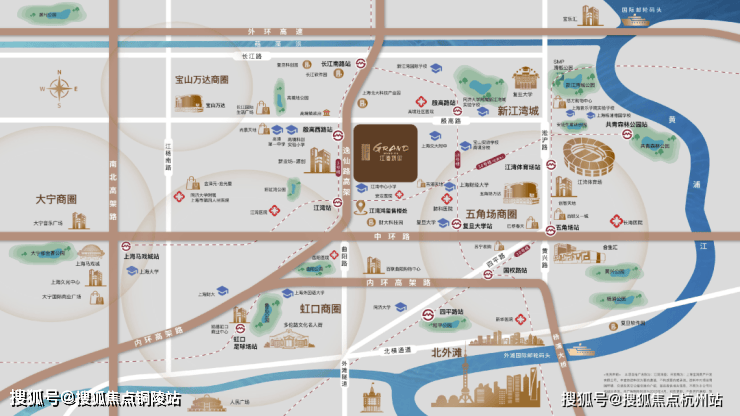 江湾鸿玺售楼处地址位置:上海市宝山区高境镇高境欣苑北174米