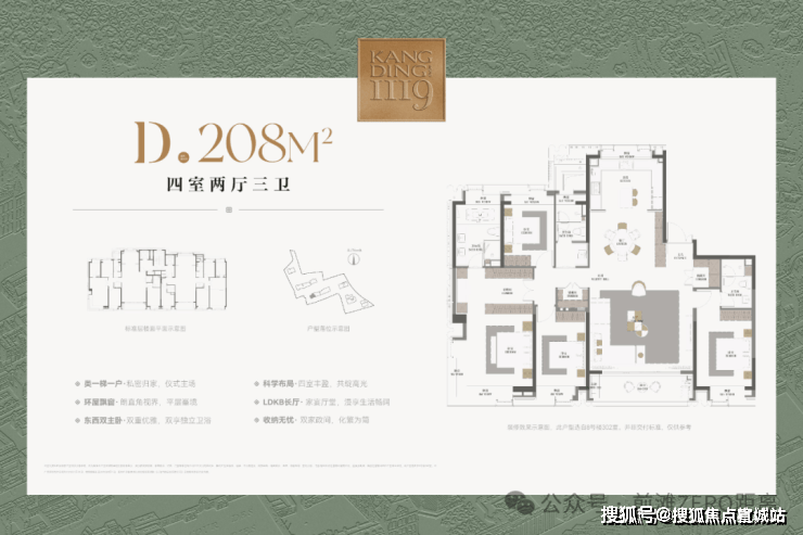 6米面宽LDKG一体化:客厅面宽来到惊人的6米,实际上,约208㎡户型已经可以说达到了总体4.5面宽。这样的一个巨厅,再加上南北通透一体化的优势,几乎可以容纳任何形式的洽谈或者聚会。