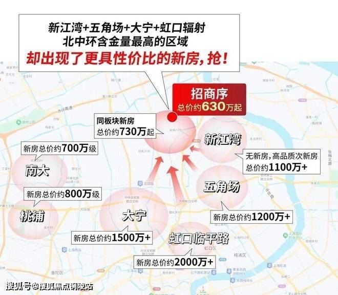 一方面,这里是杨浦新江湾、五角场;虹口临平路;静安大宁的下一站,而四大高端豪宅区内的新房门槛大多都在约1200万+,比招商序贵了接近一倍。在大水漫灌之下,招商序所在的区域价值水涨船高,位列宝山第一。
