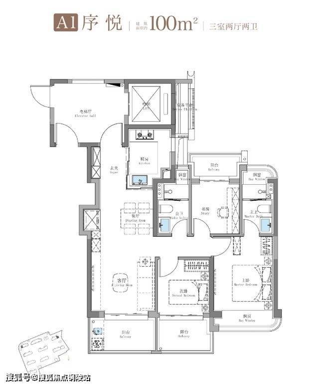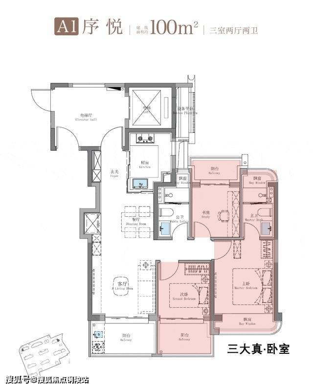 再来看建面约114㎡三房,百平三房的升级款,让人拥有“这是120㎡”的错觉!