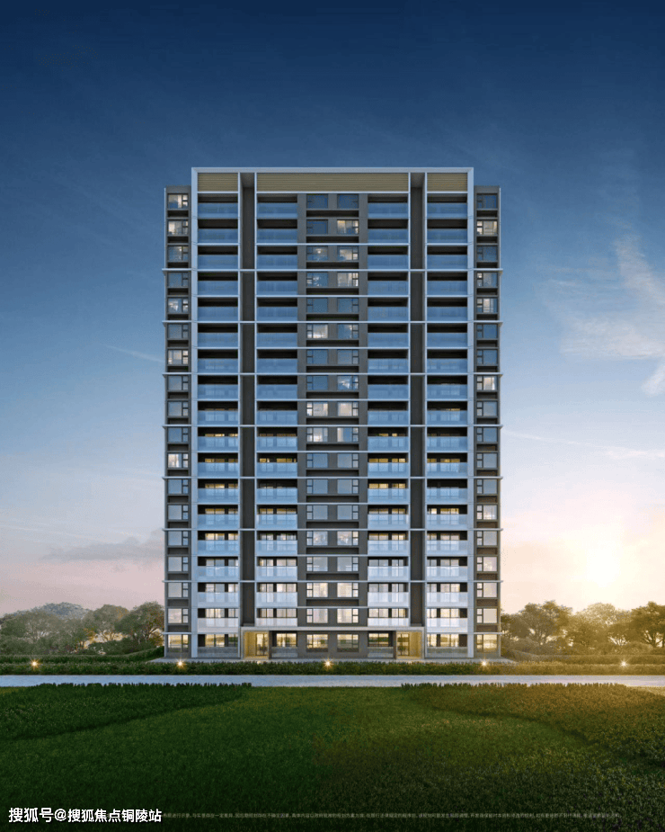 华发海上都荟 的建筑立面采用现代简约风格,以浅色涂料与灰色涂料搭配为主,门头局部采用石材及铝板,线条流畅,华贵典雅。极高的窗墙比设计,不仅让建筑外观更具时尚感,也保证了室内优越的采光视野-3。