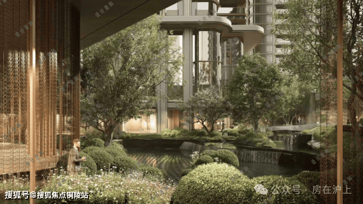 三层归家动线: 从地面景观层到架空层,再到入户层,穿越绿植、光影与水景,步步进入私域。