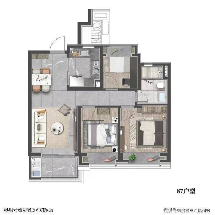 建面约87㎡3房2厅1卫