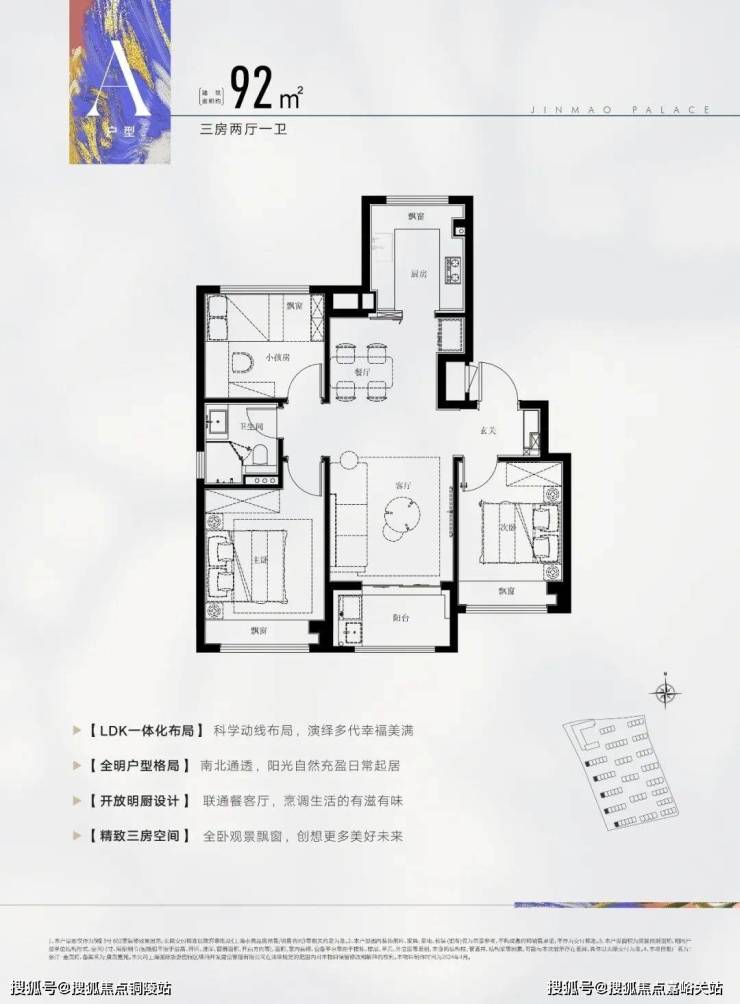 户型三开间朝南、室内“4个飘窗+1阳台”,不管是采光、视野、通风、私密性,还是实用性都十分出色。
