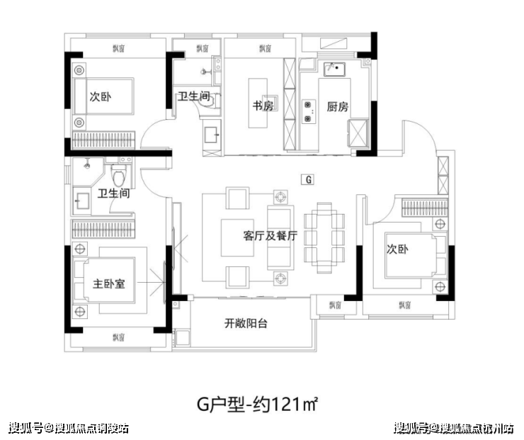 建面约121㎡ 4房2厅2卫,宽境4房,拓宽空间尺度;大开间、进深短,通透采光;主卧独立卫浴,优雅随心的寝居感受。