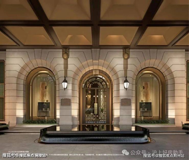 高层与洋房承袭外滩经典建筑的“横纵三段式” 结构,由下至上的力量感,树立起极具辨识度的优雅姿态。别墅则甄取华盛里石库门的过街楼、老虎窗、立面腰线等元素,以大面积石材与金属细节点缀,实现历史符号的当代奢华表达。
