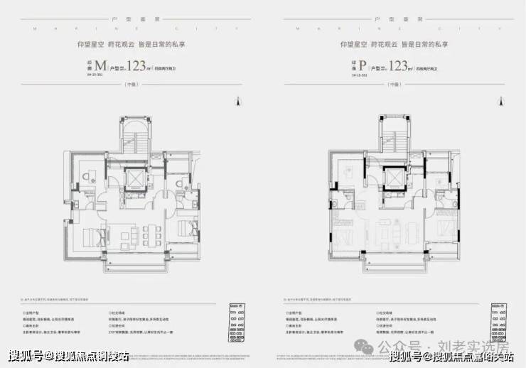 而中叠(建面约123㎡)则集便利与尺度于一身:不仅配备独立电梯厅,更以约13.4米南向面宽、约6米宽厅及南北双270°转角飘窗,营造出宽幕视野与通透空间,体感媲美整层大平层,实得率几近“满格”。