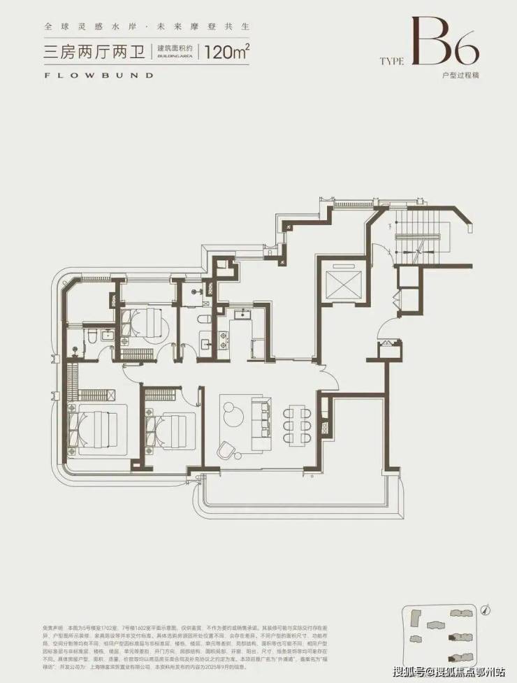 户型采用“十字序列厅”布局,南向双套房均配备独立卫浴,主卧预留衣帽间空间,三代同堂家庭居住也能互不干扰。