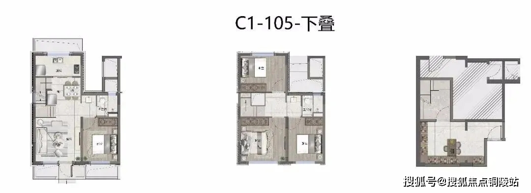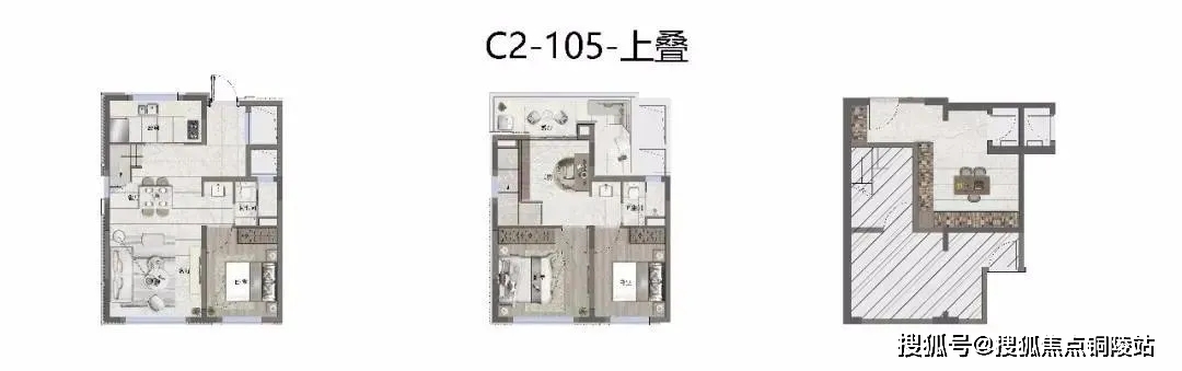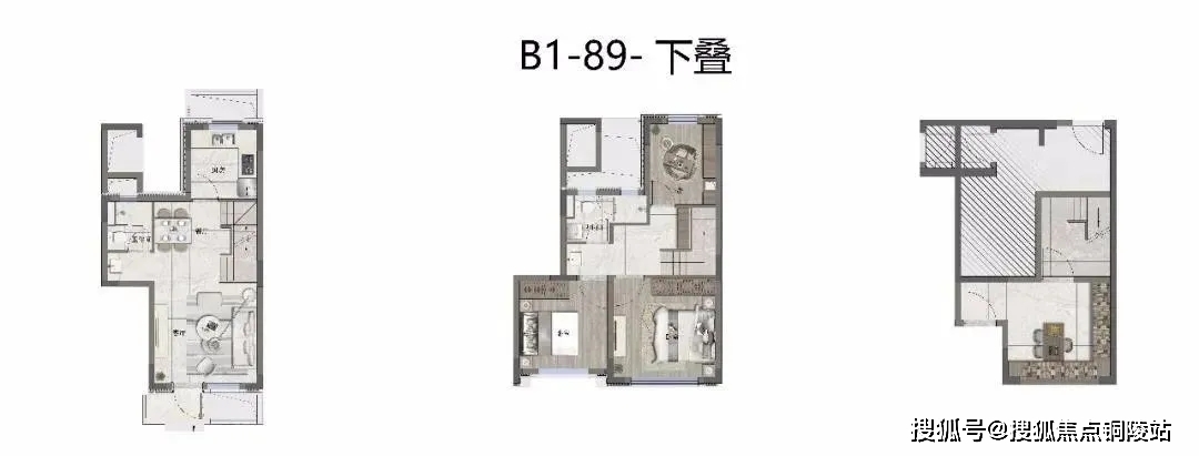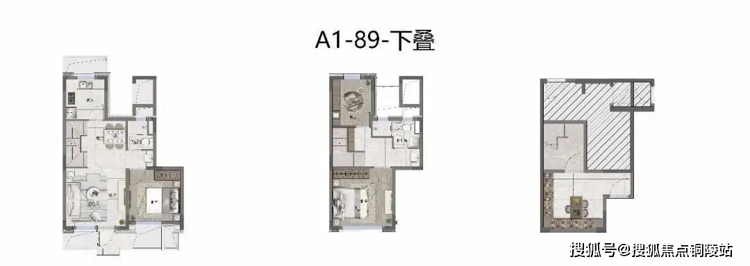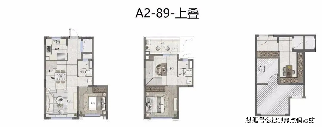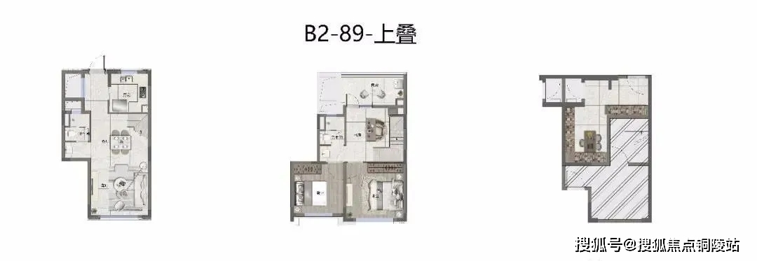 产品则以咬合式布局,叠加产品也创造出较大近7米的开间!相当大程度上减少了传统叠加公摊面积的浪费!
