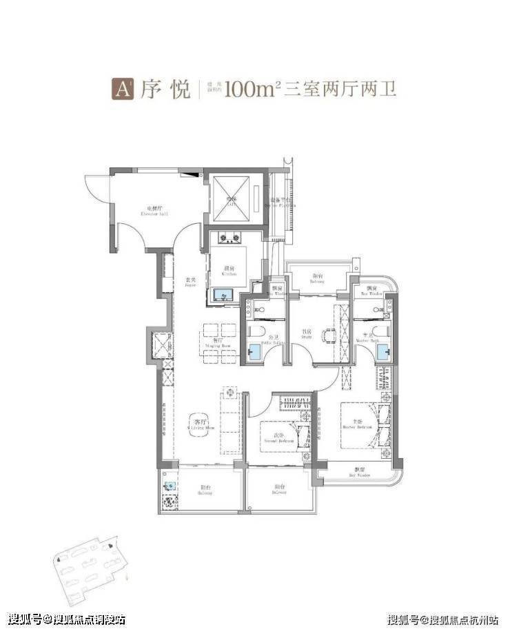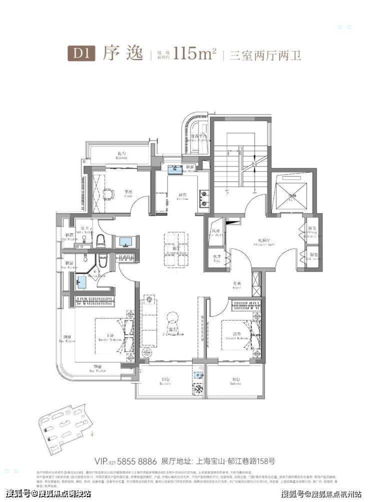 其中建面约115㎡鲲鹏阁三房户型是上海此前未见的全新王炸级产品