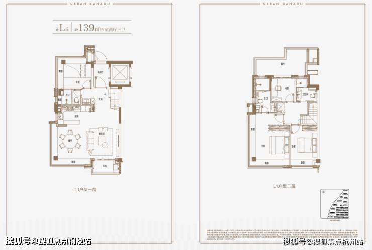 建面约139㎡上叠户型,三层是会客区,四层是居住区,阳台+露台+多个飘窗设计,附加空间非常大,在别墅类产品中实属罕见!
