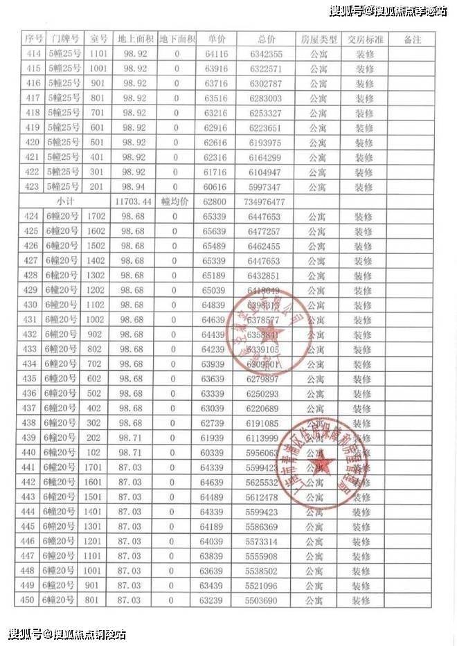 以下为项目完整一房一价表