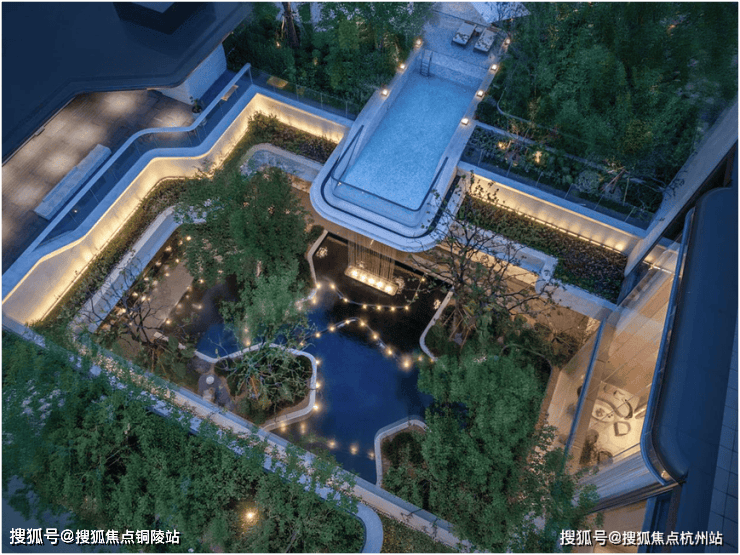 灵感源自新加坡edtion度假酒店的悬挑式戏水池,搭配4.3米飞瀑,创造别具一格的城市绿意的立体浮岛视觉奇观。