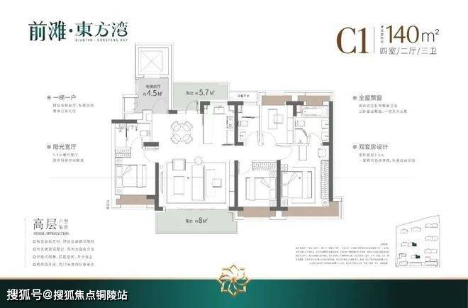 ◆户型分布:建面约103㎡-120㎡-140㎡-175㎡3-4房