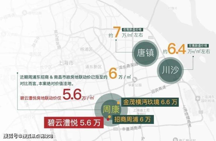 周浦地处于浦东的中心位置,承接张江科学城南扩,依托上海国际医学园区,结合北部康桥工业园,致力打造科创引领、产业发展有高度的实力城镇。周边住宅单价约6万-8万元。碧云遭悦占位周浦核心,与城市共享未来势能,房地联动价仅约5.6万元/㎡,抢占时代红利。