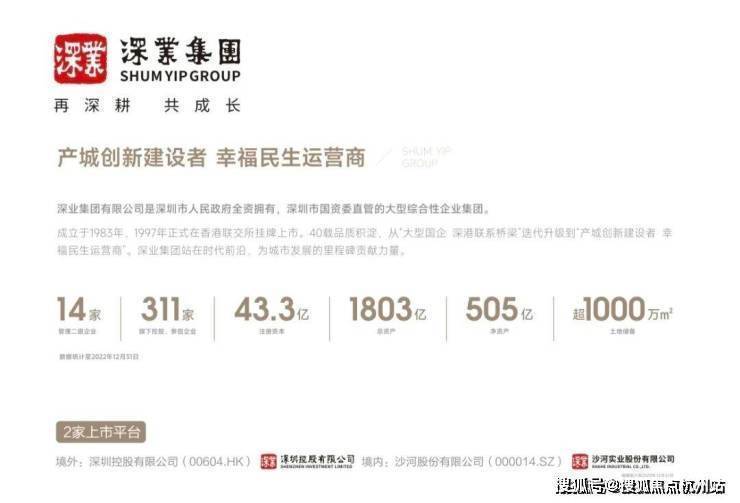深业集团是深圳市人民政府全资拥有,深圳市国资委直管的大型综合性企业集团,成立于1983年,1997年正式在香港联交所挂牌上市。