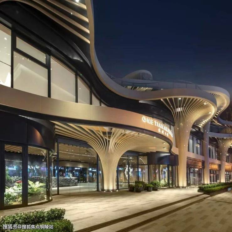 天安1号前期的住宅外立面选用铝板+石材,搭配大面积玻璃,颜值出众!