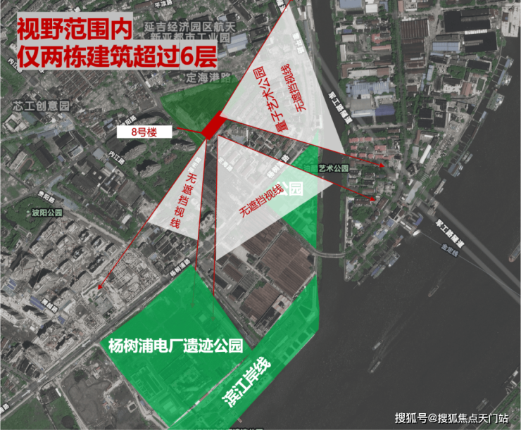 项目位于杨浦滨江“一岛两翼“黄金支点,向左是滨江南段产业核心,向右是复兴岛未来科创。